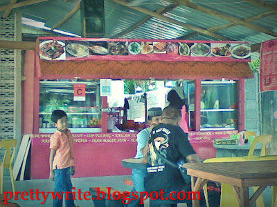 Total makan tadi 2 orang RM 13..bolehla kan..yang kelakornya pakcik tu dok kira2 yang kitorang makan guna pen dengan kertas jer..lepas tu macam pening2 lalat..kejap tulis seringgit..kejap 2 ringgit..siap salah tulis tuu..hahaha..layan jerlah pakcik..sebab masa tu dia cari wife dia hilang pergi mana tah keluar dengan kereta..sekali anak dia balik sekolah tanya 'mama mana?tak jumpa mama?'..ahah risauuu ingat g ambik anak sekolah..adehh..macam2..